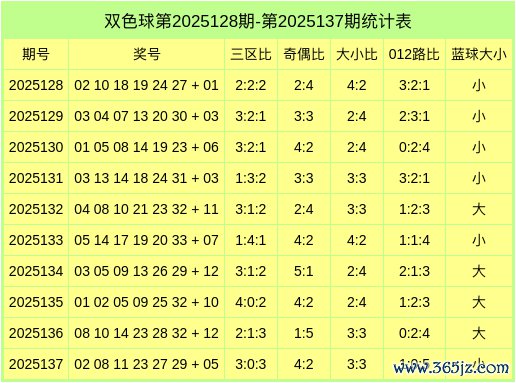 红球大小比为3:3,奇偶比为4:2,012路比为1:0:5,蓝球开出少许。